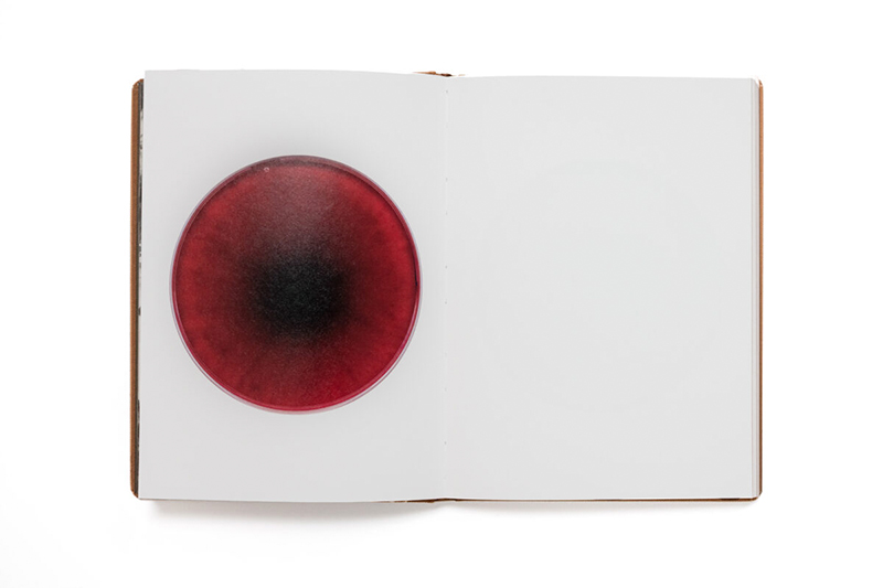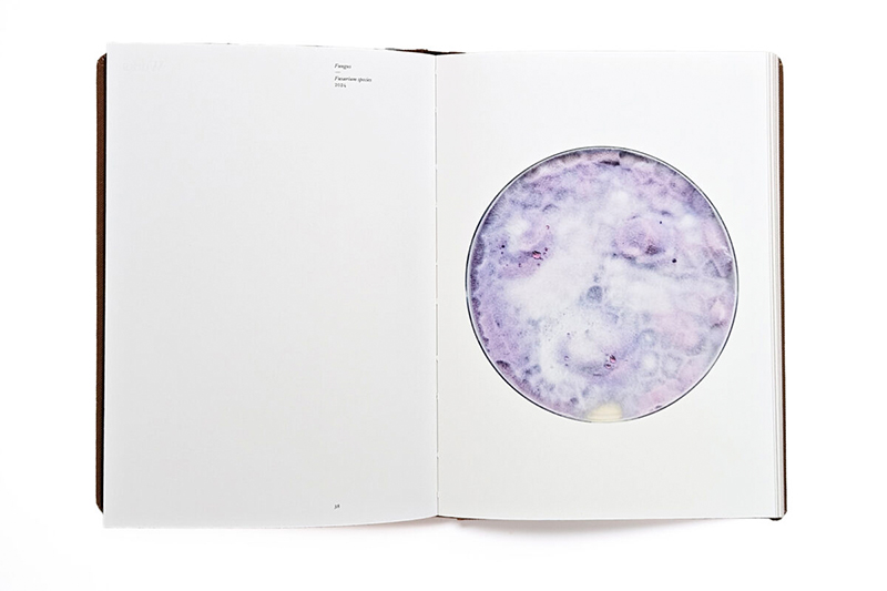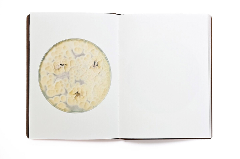 Other spores have been carefully grown in Petri dishes and scanned in high resolution, producing images that unveil a vivid, microscopic world of fungal forms and colors that normally remain unseen. In another process, Howalt grows fungi into paper-thin layers and leaves them to dry over several months. Once dried, these fragile, translucent sheets are used as unique fungal negatives in the darkroom.